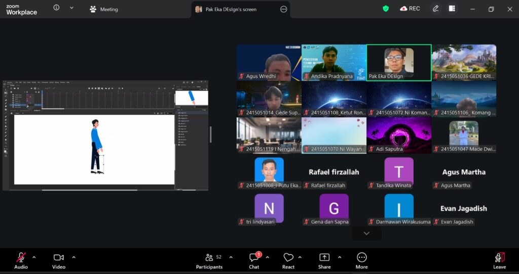 Program Studi Pendidikan Teknik Informatika (PTI) Undiksha menunjukkan komitmen nyata dalam meningkatkan kualitas lulusannya dengan menghadirkan perspektif industri langsung ke dalam ruang kelas melalui kolaborasi sinergis antara akademisi dan praktisi. Dalam mata kuliah Dasar Animasi yang diampu oleh Bapak I Ketut Andika Pradnyana, S.Pd., M.Pd., mahasiswa kelas 4A dan 4B mendapatkan kesempatan istimewa untuk belajar langsung dari I Gede Eka Mardika Jaya, seorang tenaga ahli dari Krisna Bali (North Bali), sebuah perusahaan ikonik di sektor industri kreatif Bali. Sepanjang pertemuan ketiga hingga ketujuh, dosen praktisi tersebut membagikan pengalaman panjangnya dalam dunia desain, branding, dan teknik animasi, yang membekali mahasiswa dengan wawasan praktis serta relevansi alur kerja di industri nyata.