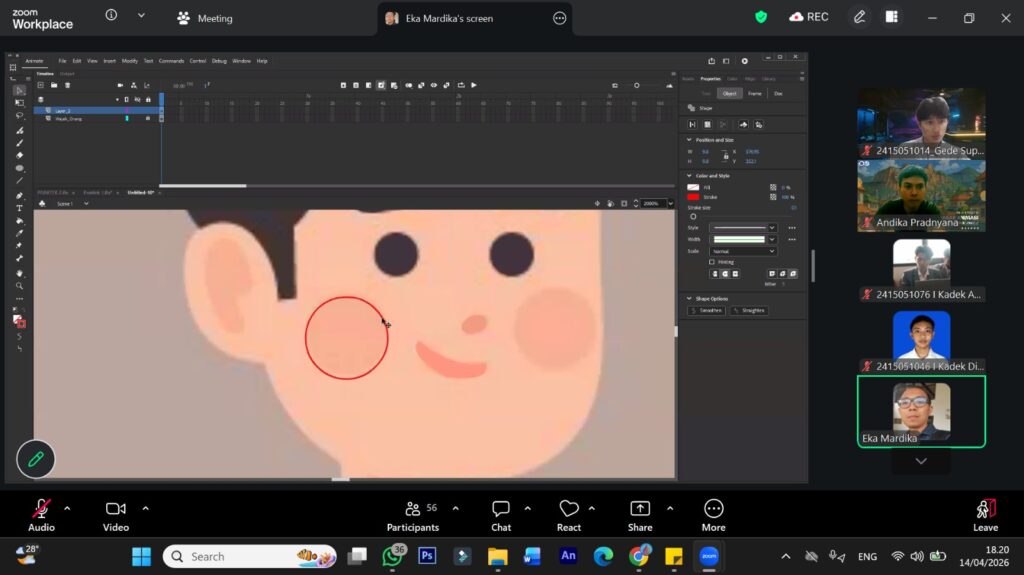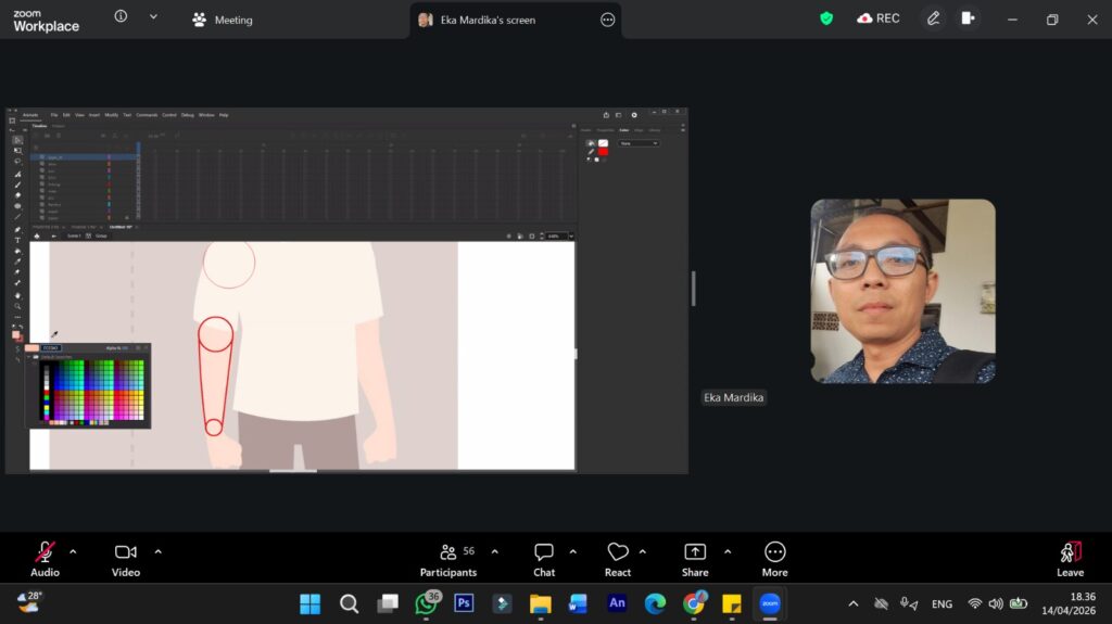 Fokus utama dalam rangkaian perkuliahan ini mencakup penguasaan teknik animasi 2D profesional, mulai dari pembuatan aset hingga teknik gerak yang efisien, serta strategi implementasi branding melalui identitas visual digital. Selain itu, mahasiswa juga diajarkan untuk menjawab tantangan zaman melalui integrasi Artificial Intelligence (AI) guna mempercepat proses produksi animasi tanpa menghilangkan esensi kreativitas manusia. Penggabungan antara teknik konvensional dan teknologi mutakhir ini dirancang agar mahasiswa tidak hanya menguasai teori di atas kertas, tetapi juga memiliki kemahiran teknis yang siap pakai (industry-ready) untuk menjawab berbagai tantangan global di masa depan.